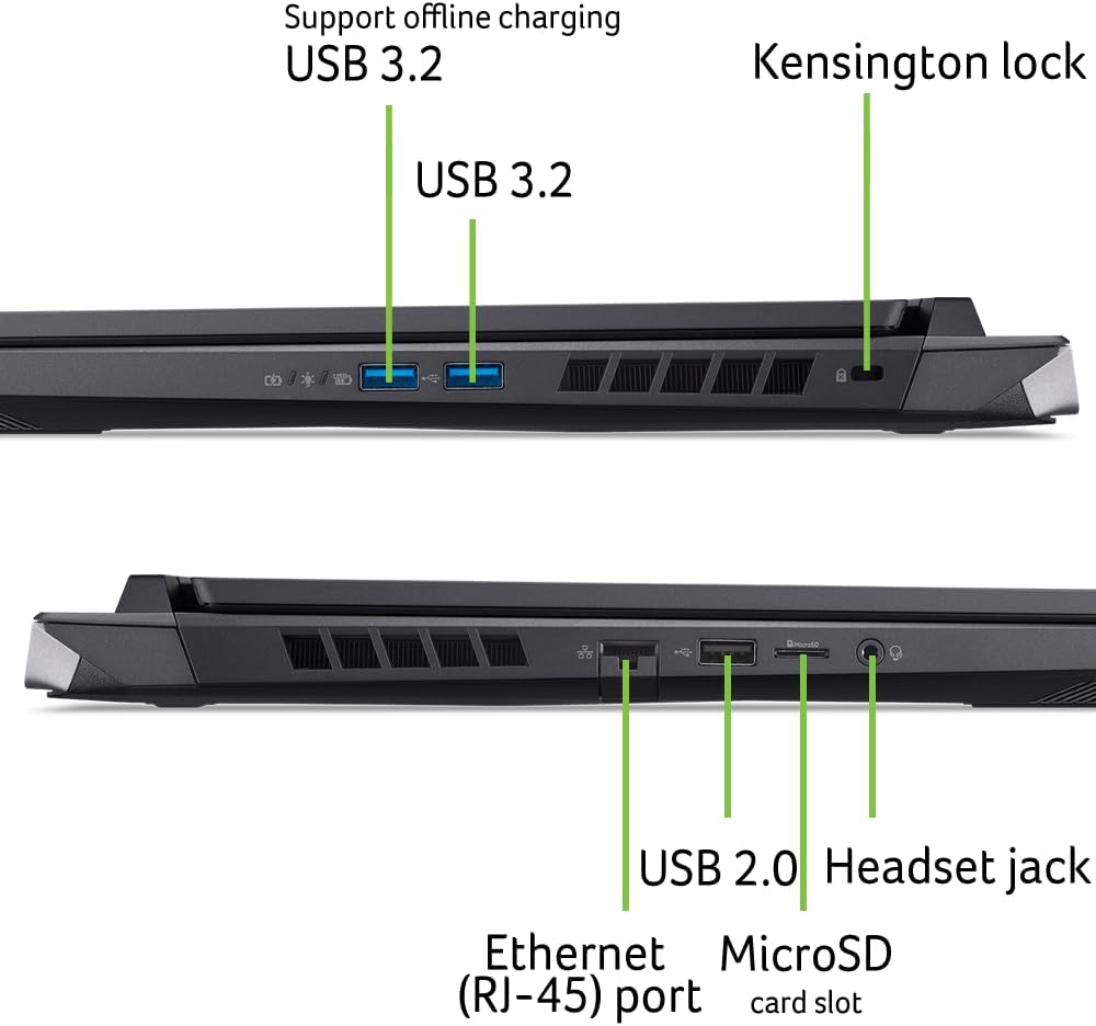 Stay Connected: Your gaming sanctuary is wherever you are. On the couch? Settle in with fast and stable Wi-Fi 6E. Gaming Cafe? Get an edge online with Gigabit Ethernet. No matter your location, Nitro 17 ensures you’re always in the driver’s seat.